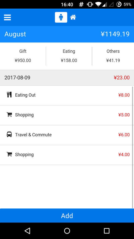 A personal accounting app for Android. Personal side project.